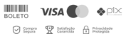 Cartão de crédito, boleto e pix.