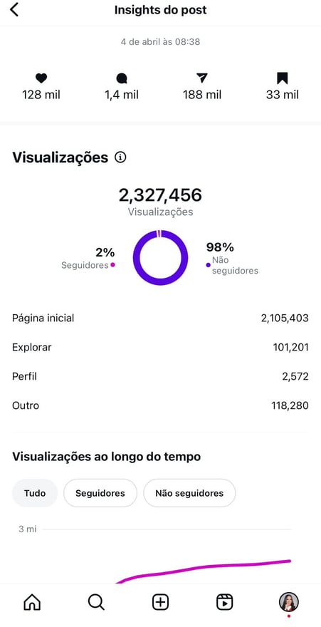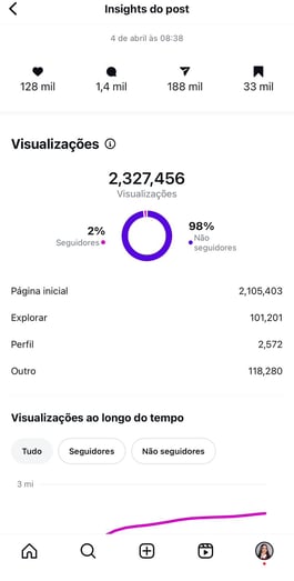 ✨Algumas postagens passaram de 1 MILHÃO de visualizações.