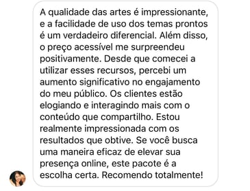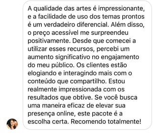 Esses depoimentos mostram que o que oferecemos não é apenas conteúdo pronto é praticidade, economia de tempo e transformação real no seu posicionamento digital.