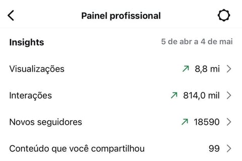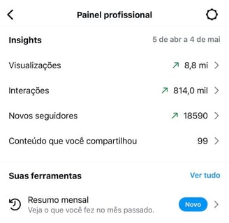 💥 Aqui está um print do meu próprio perfil, com alcance de mais de 8,8 milhões de pessoas em 30 dias, usando exatamente esse estilo simples, direto e estratégico: